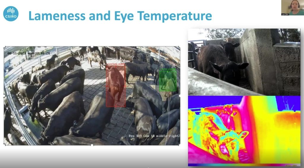 Dr Campbell stepped through the process that CSIRO has been engaged in, where animal behaviour and welfare scientists and computer scientists have combined, in partnership with a commercial Australian abattoir, to develop a prototype computer vision system to detect cattle behaviour.