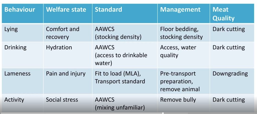 She said there were specific stages within the slaughter process where animals needed to be monitored and managed effectively to optimise the welfare experience.